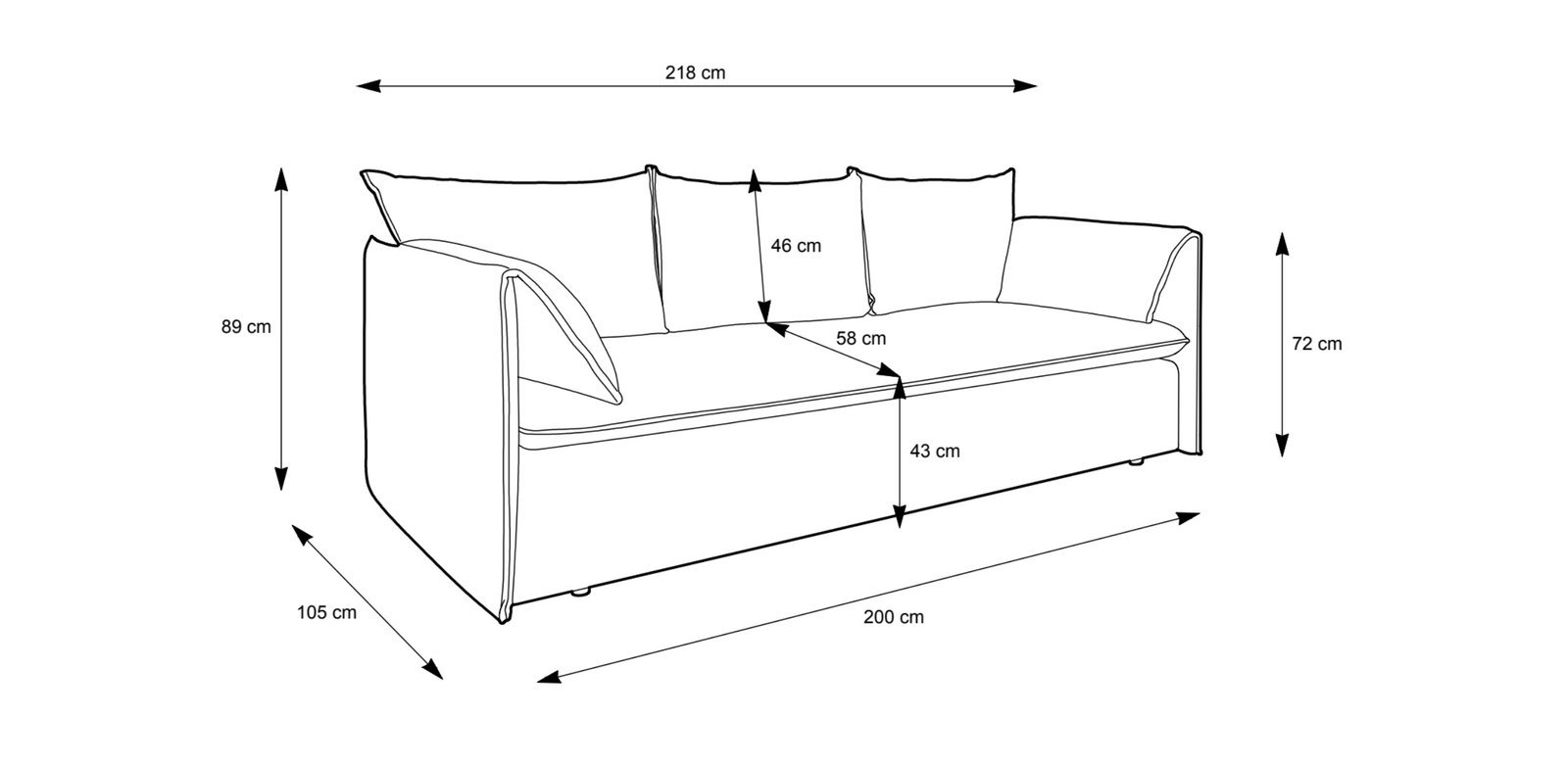 Funcționalitatea este întregită de mecanismul de extensie ușor și un spațiu de depozitare spațios, ideal pentru pături, perne sau lenjerii. Gold rămâne astfel o canapea practică și elegantă, fără compromisuri estetice.