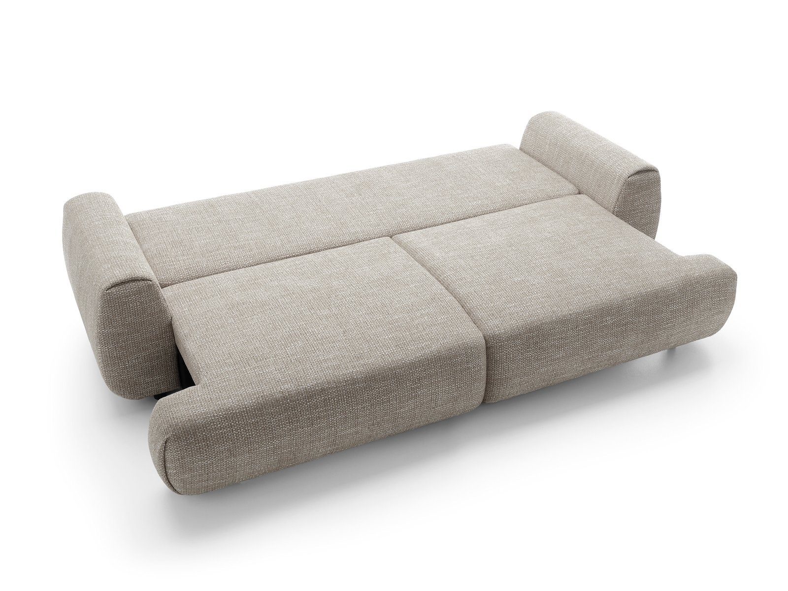 Concepută pentru confort zilnic, canapeaua este realizată pe o structură solidă, cu spumă de înaltă flexibilitate așezată pe arcuri sinusoidale plane – o combinație care oferă susținere uniformă și o senzație moale, dar stabilă. Mecanismul extensibil transformă rapid canapeaua într-un pat de 200×150 cm, potrivit atât pentru utilizare ocazională, cât și pentru somn regulat.