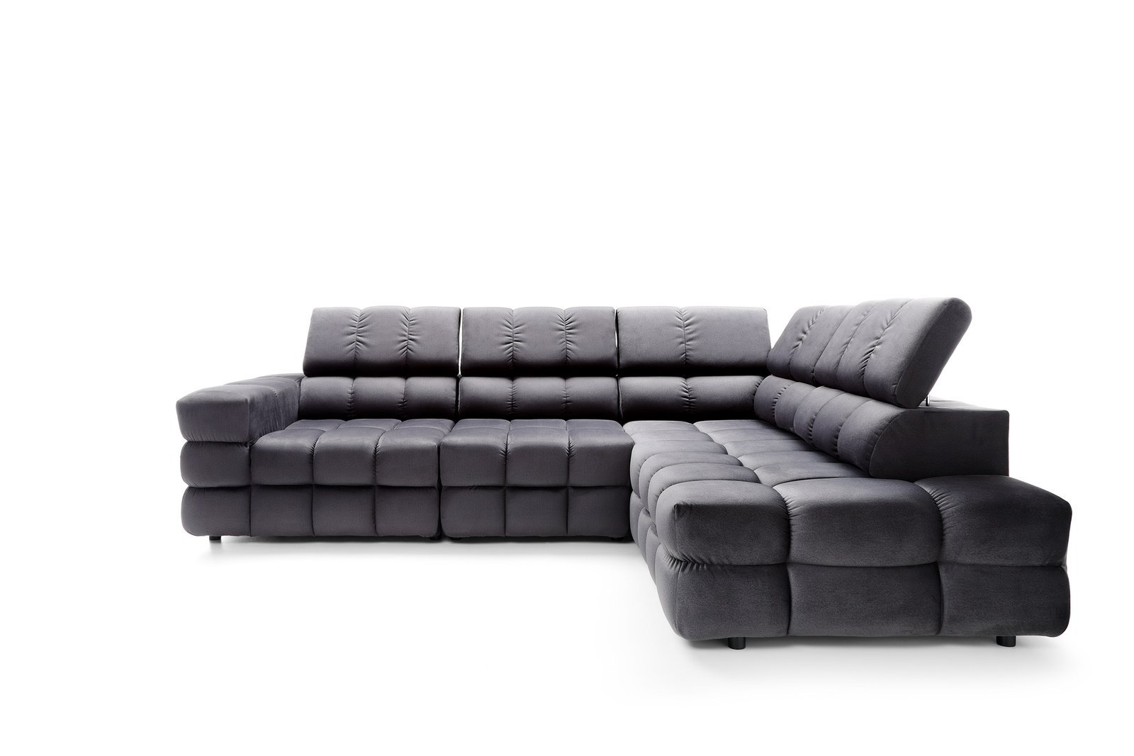 Funcționalitatea sa iese în evidență prin tetierele reglabile, perfecte pentru relaxare zilnică inteligentă. Șezutul este construit pe un sistem cu arc ondulat profilat, susținut de plasă de arcuri și completat cu spumă de înaltă elasticitate (HR35), oferind o susținere echilibrată și durabilă.