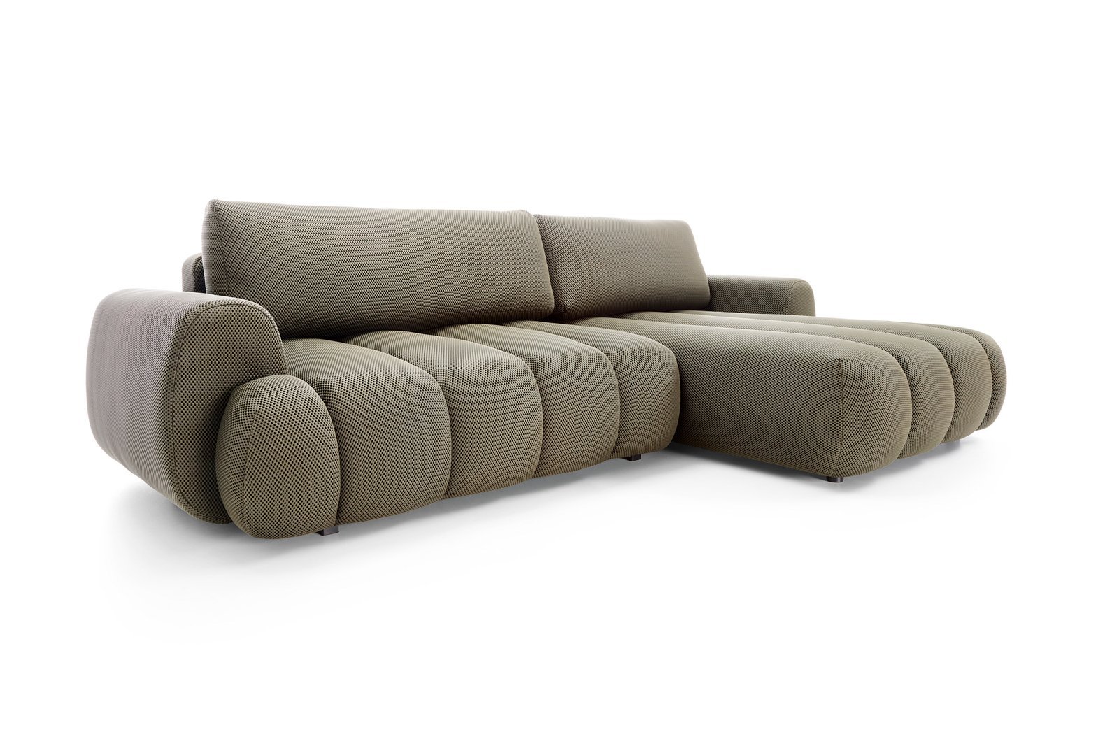 Passo M integrează și o ladă de depozitare ascunsă, perfectă pentru așternuturi, perne sau alte articole textile, păstrând livingul ordonat fără efort. Tapițeria este realizată din materiale premium, rezistente la uzură, iar picioarele metalice oferă stabilitate și un aspect modern, elegant.