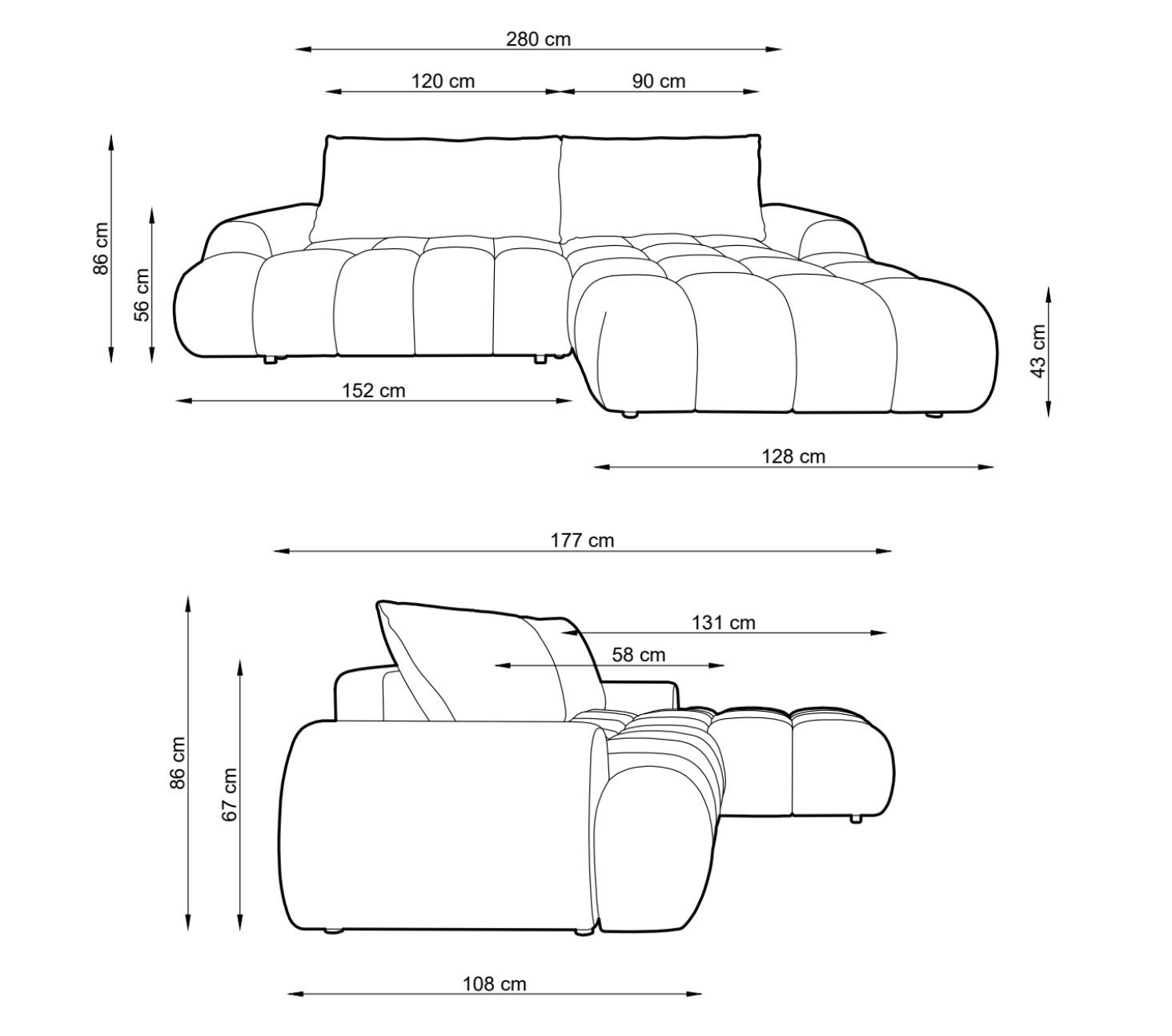 Confortul este susținut de o structură solidă cu spumă de înaltă flexibilitate, așezată pe arcuri sinusoidale plane – o combinație care oferă susținere uniformă și o senzație plăcută de relaxare, zi de zi. Dimensiunile generoase de 280×178 cm și suprafața de dormit de 210×135 cm transformă colțarul într-un spațiu ideal pentru oaspeți sau pentru somn zilnic, datorită mecanismului extensibil ușor de utilizat.