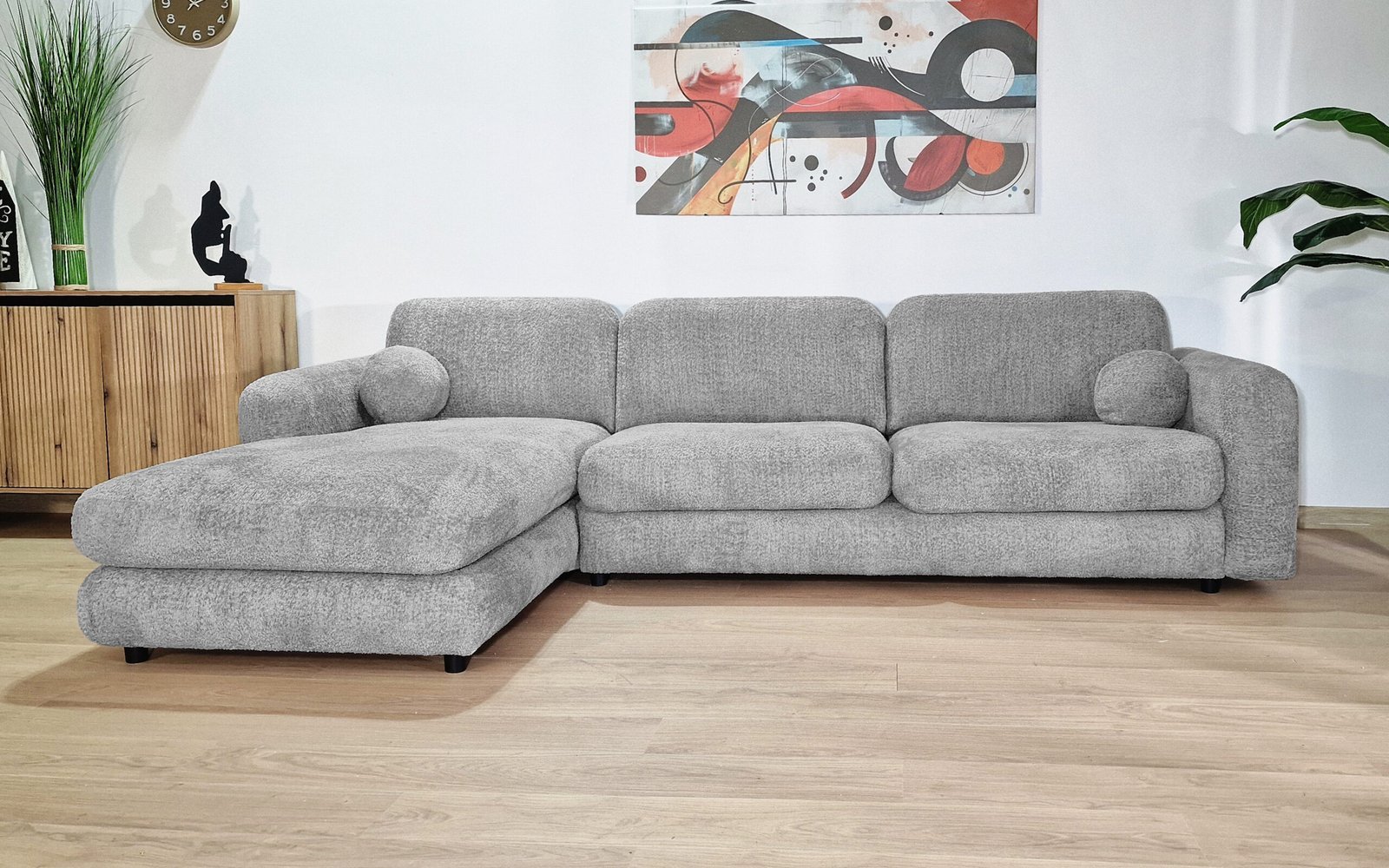 Cu un design fluid și proporții echilibrate, colțarul ROUND LCA+A180 aduce un plus de rafinament oricărui living. Liniile rotunjite ale brațelor, spătarului și pernelor de șezut creează o estetică prietenoasă și modernă, oferind un aspect plăcut și relaxant. Tapițeria din material textil premium, plăcută la atingere și ușor de întreținut, completează armonios designul curbat, transformând colțarul într-o piesă centrală elegantă.