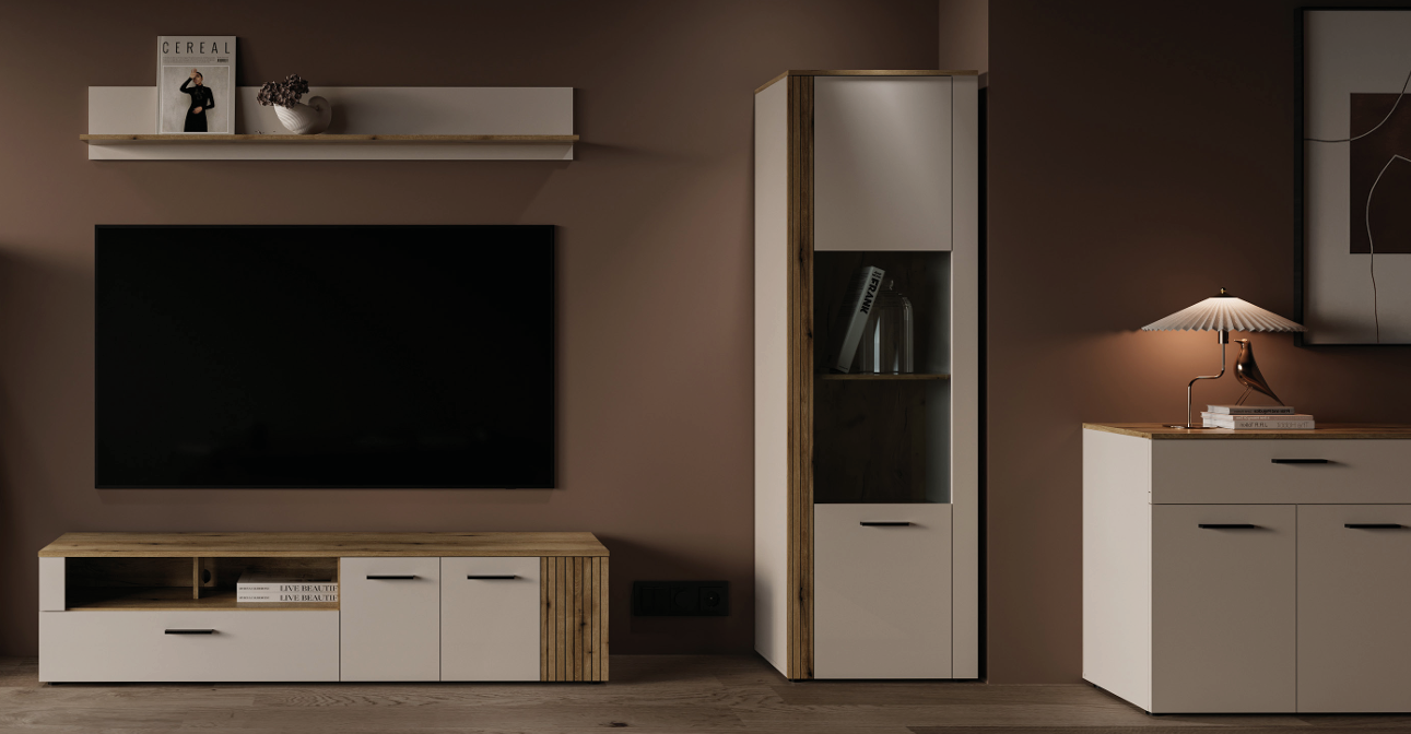 Colecția FERO va umple spațiul livingului și al sufrageriei, creând un aspect coerent.