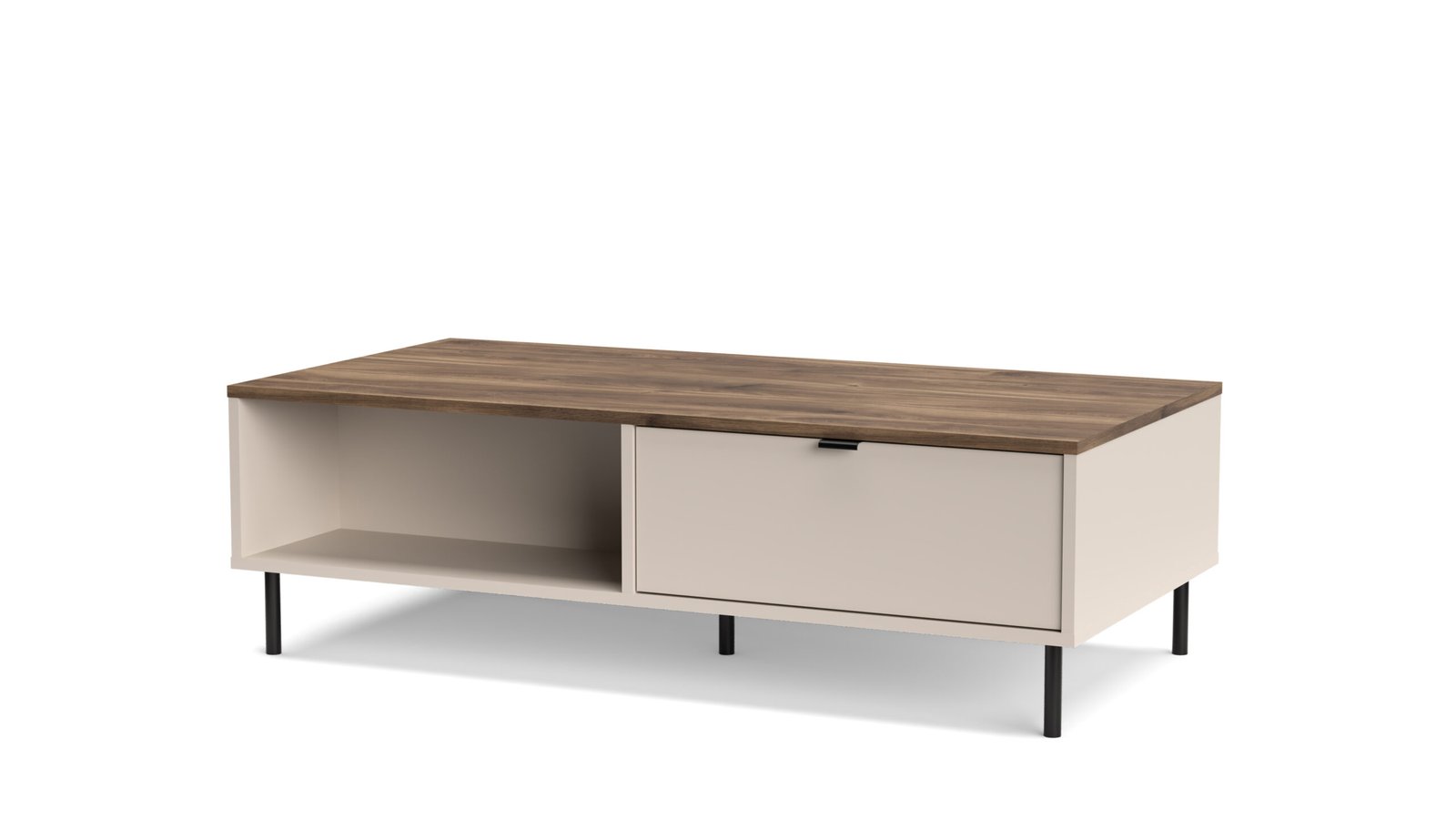 Realizată din PAL cu fronturi din MDF, colecția Estera oferă un aspect bine definit și o utilizare practică de zi cu zi. Picioarele metalice negre și mânerele în ton contrastant completează designul și adaugă un plus de eleganță discretă.