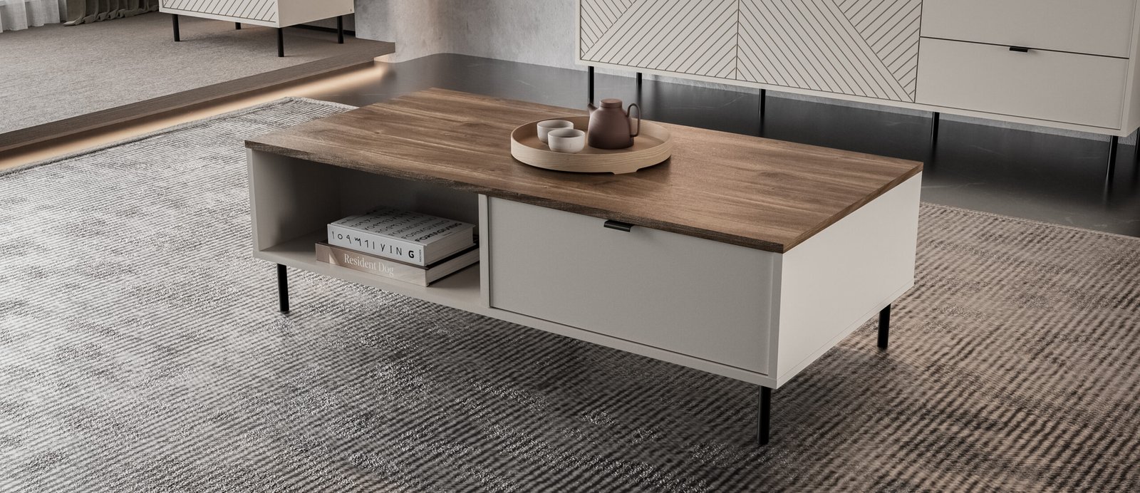 Unul dintre avantajele importante ale colecției Estera este flexibilitatea: piesele se aleg individual, astfel încât să poți crea un ansamblu potrivit spațiului și nevoilor tale. Fie că alegi comode, vitrine, dulapuri sau măsuțe de cafea, Estera păstrează aceeași notă de coerență, funcționalitate și stil modern.