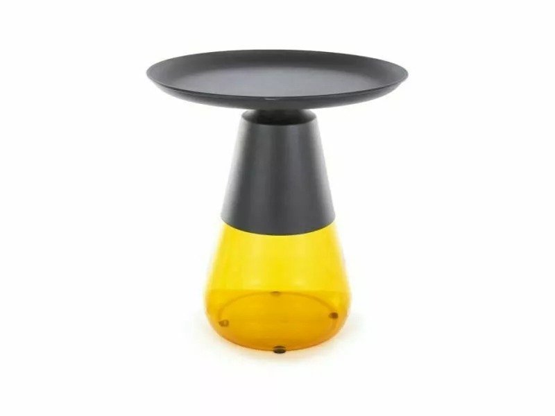Masă de cafea, blat: metal, cadru: sticlă, culoare: negru mat / portocaliu.