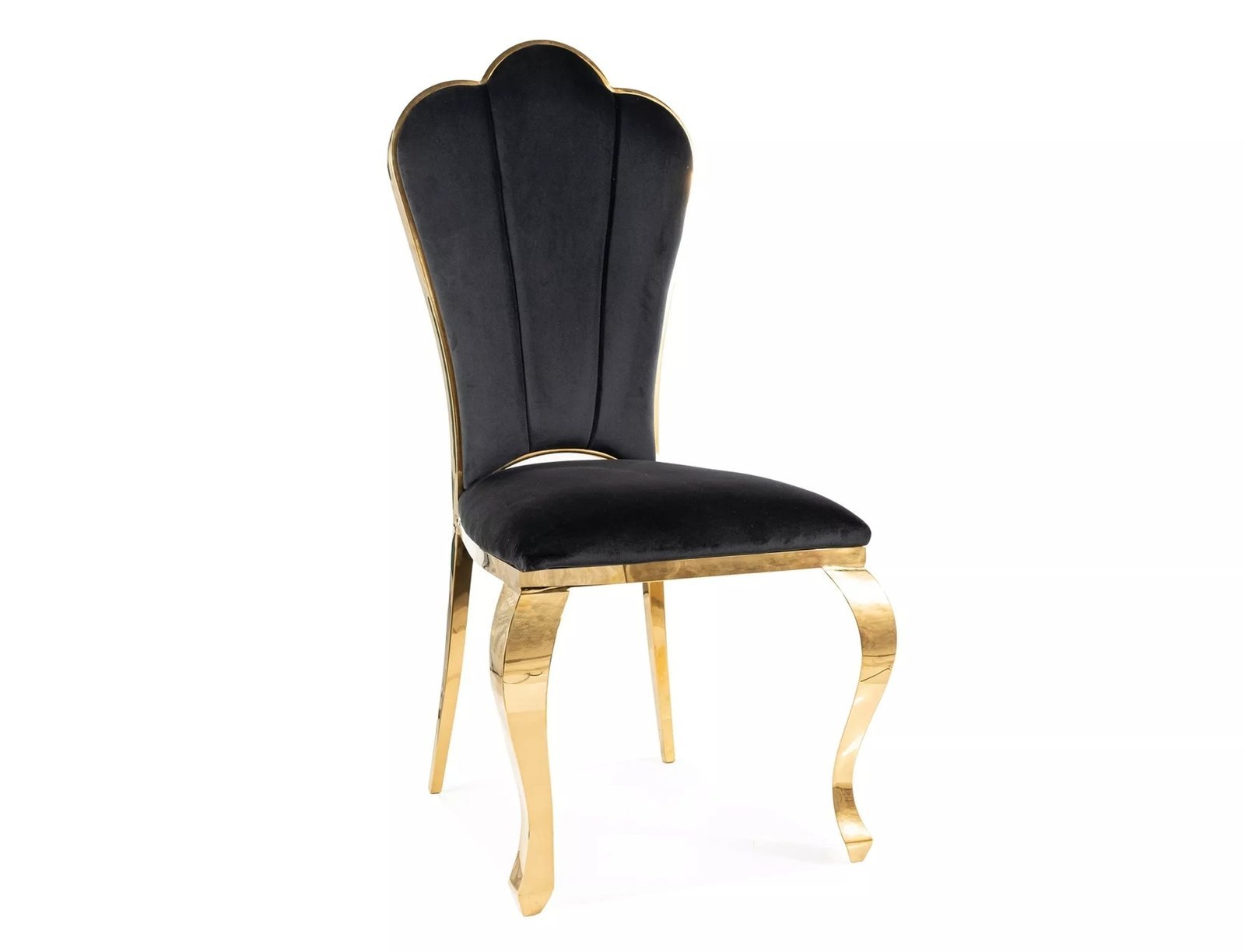 Scaun dining QUEEN Velvet, negru/auriu, stofa catifelata/metal, 53x59x111 cm