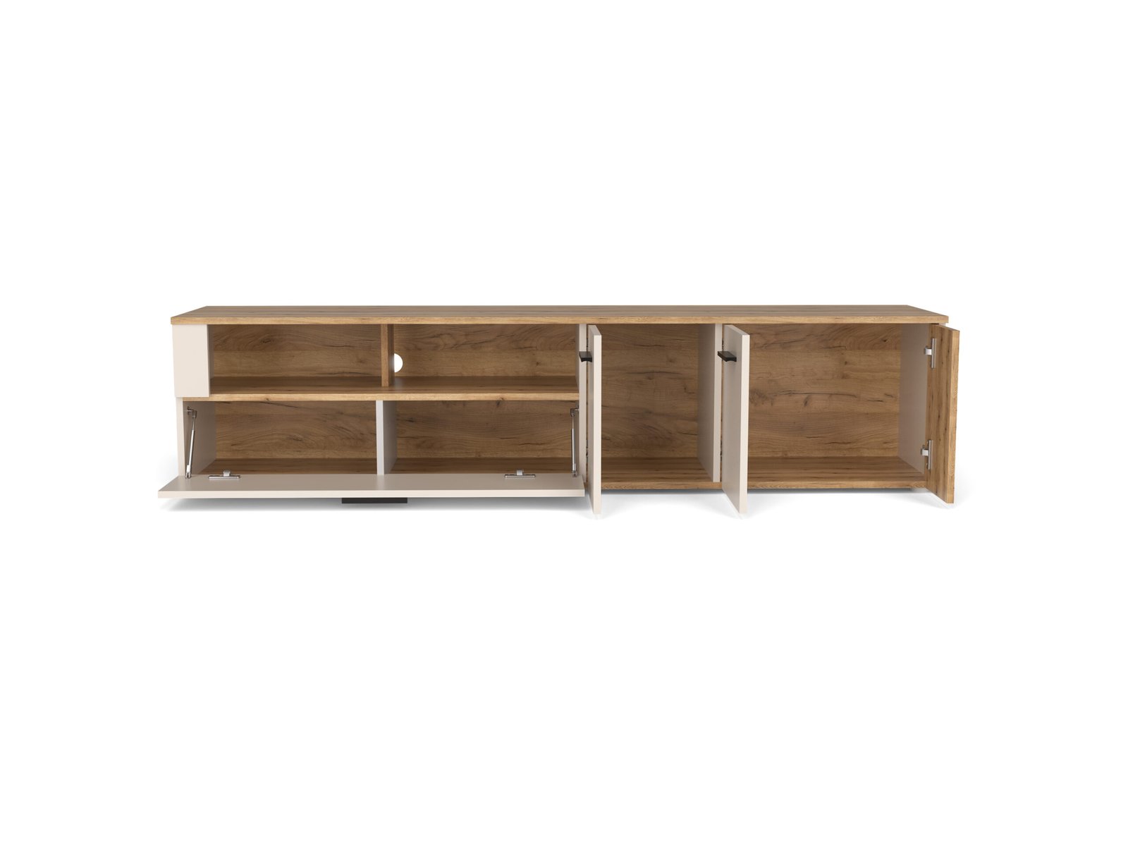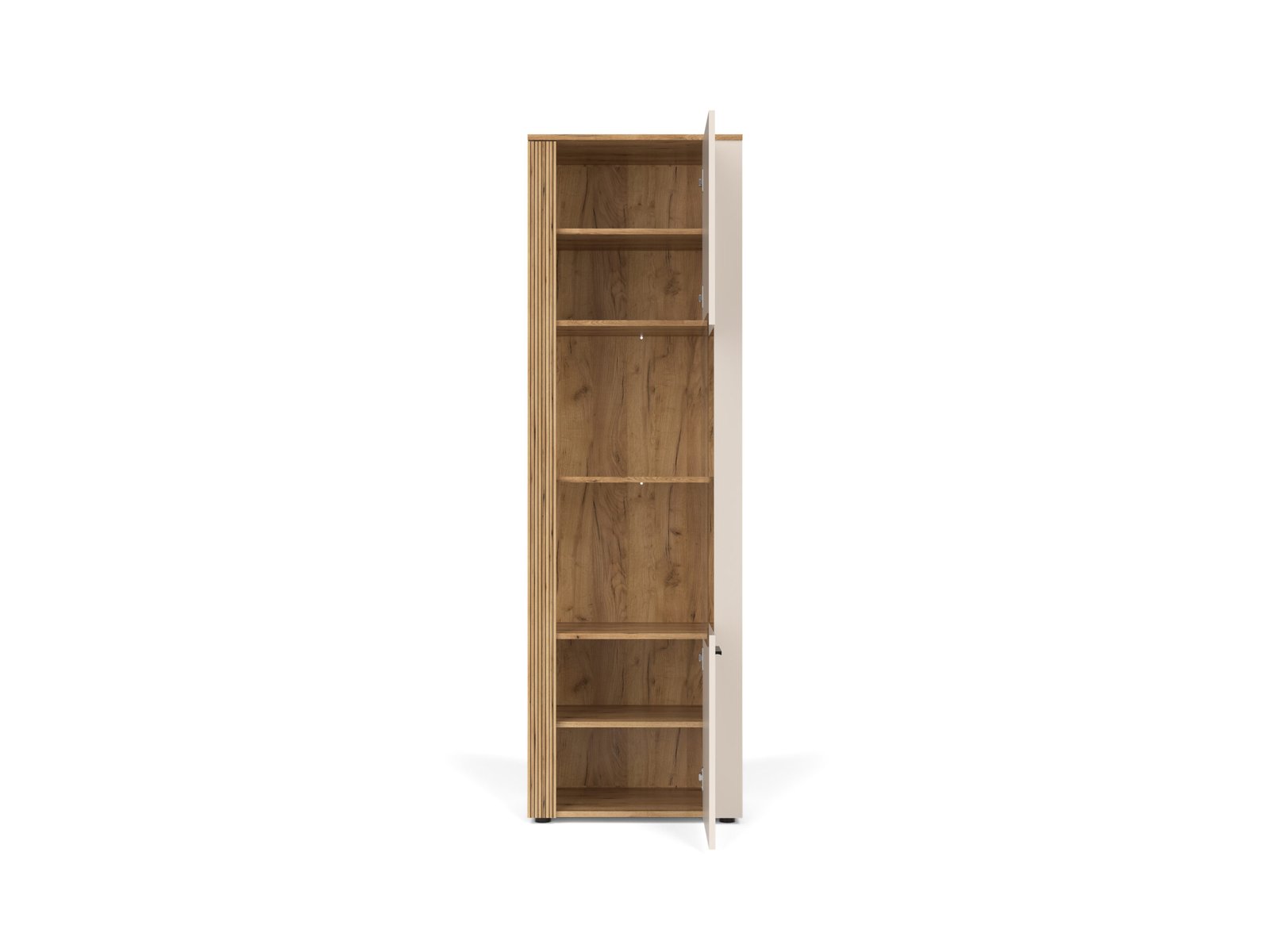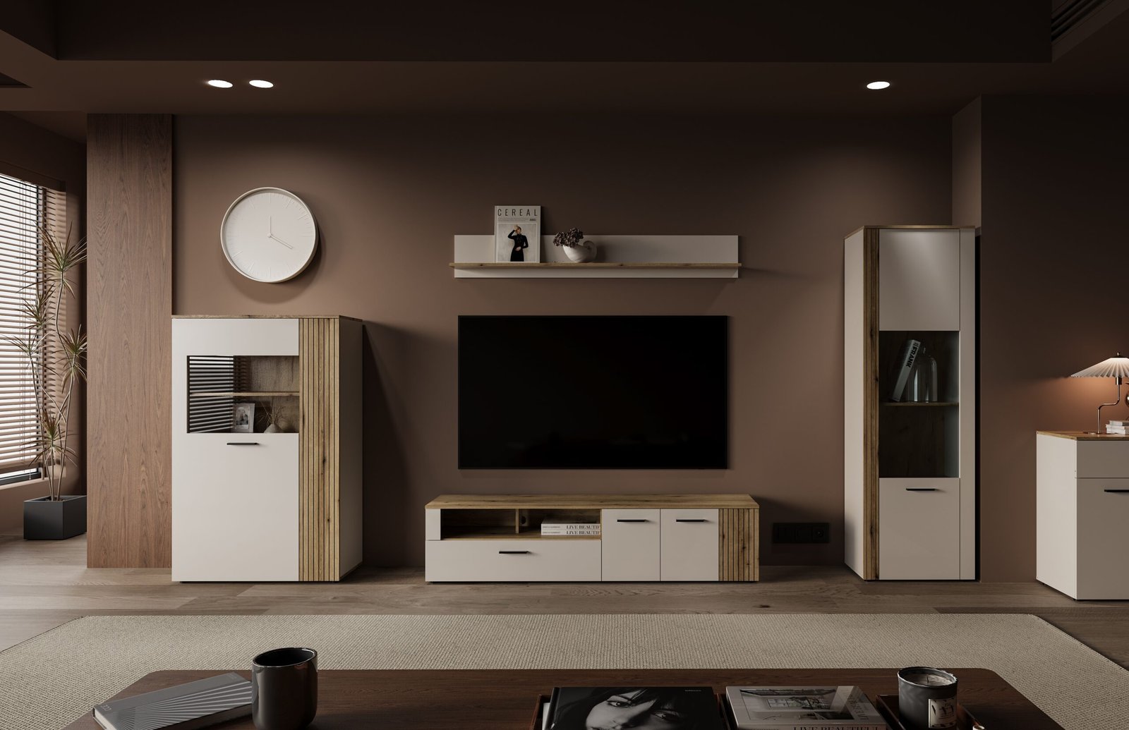 Finisajul cașmir adaugă eleganță și neutralitate. Elementele cu efect de stejar adaugă o notă confortabilă și naturală interiorului.